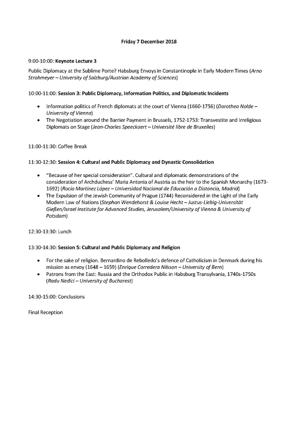 Noting the rapid shifts in the study of diplomatic history over the last couple of decades, Universiteit Gent together with the Österreichische Akademie der Wissenschaften and the Koninklijke Vlaamse Academie van België voor Wetenschappen en Kunsten organized on December 6–7, 2018 an international conference on 'Addressing the Public Abroad: Strategies of Cultural and Public Diplomacy in the Early Modern Habsburg World (1550–1750)'. Between its three keynote lectures and five sessions the conference aimed to explore the strategies adopted either by actors from within the Habsburg lands in order to gain influence on publics abroad or by foreign powers attempting to engage Habsburg subjects in the period from the mid-16th to the mid-18th century. Set within the framework of the DaT18 project, my paper was concerned with the emergence of Russia as protector for the Transylvanian Orthodox and the channels it employed to reach to the Romanian dissenters. The emphasis laid both on the reasons the Russian court became interested in the religious conflict in Transylvania and on the deeper implications with regard to the changes in confessional policy it entailed for the Habsburgs over the course of the period.