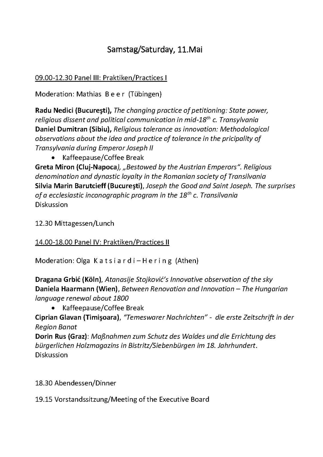On May 10-11, 2019 the Society for 18th Century Studies on South Eastern Europe (SOG 18) hosted in Graz a conference on ‘The 18th Century as Period of Innovation’, set around the topics of ideas, practices and impact of change during the time in question. In terms of the geographical coverage, the dozen or so papers have focused on Venetian, Ottoman and, naturally, Habsburg territories in the region. In this framework, Transylvania accounted for many of the case studies, as the speakers dealt with the consequences of toleration in the age of Joseph II, the promotion of dynastic loyalty among the Greek Catholic Romanians, the meanings of an iconographic programme that paralleled the monarch in Vienna to Saint Joseph, or the early ecological responses to forests’ damage and exploitation. The conference thus provided an excellent setting for presenting my recent findings on the supplications submitted by the Orthodox in Transylvania to provincial and central authorities in defence of their religious rights. The paper considered three major areas of innovation, as it discussed the new practice of signing petitions and the underlying organizational transformations in the 1750s, examined the links between earlier socio-economic grievances and the later religious requests that point to the transfer of a political model from the state to its subjects, and questioned the reasons and documented the Habsburgs’ effort to reset petitions at the core of political dialogue in order to recompose tensions in the late 1750s and the early 1760s.
