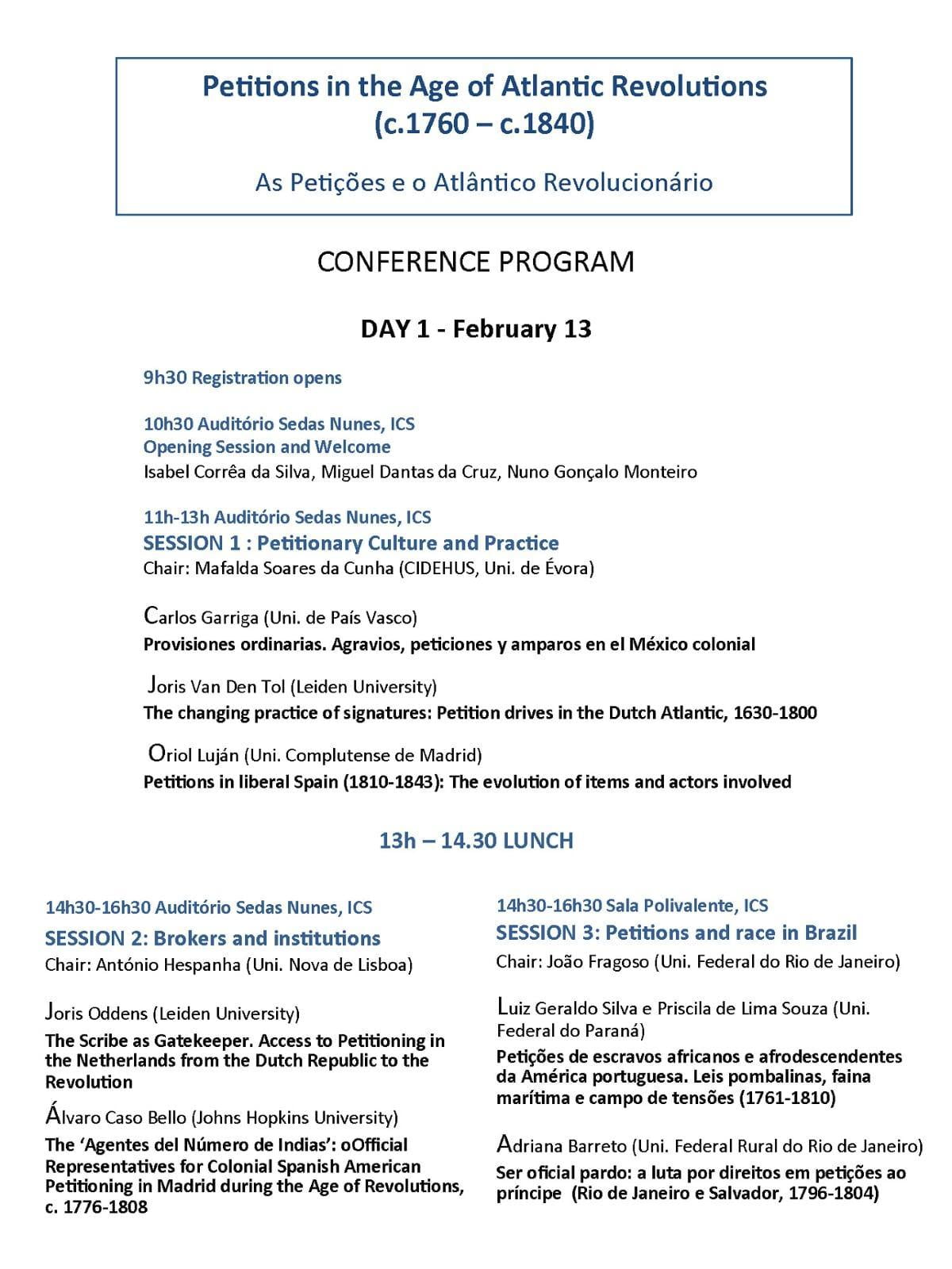'Petitions in the Age of Atlantic Revolutions' conference at ICS Lisbon