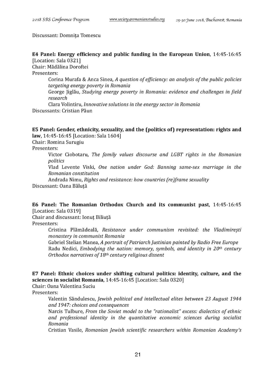 Organized every three years, the conference of the Society for Romanian Studies has become over time one of the most significant academic events on all aspects of Romanian culture and civilization. The 2018 edition, held in Bucharest on June 26–29, attracted much interest, with some 450 registered participants from 27 countries taking part in the 13 sessions running in 10 parallel panels. As most presentations kept to the general theme of the conference, #Romania100: Looking forward through the past, it was the shifting perspectives, from history to anthropology to sociology to economics to political science etc., that combined to turn it into a comprehensive critical reflection on Romania’s troubled course from 1918 to the present day. It is in this context that the DaT18 project made its first public appearance, in a panel on the Romanian Orthodox Church and its communist past. The paper delivered tackled the question of BOR’s efforts to shape the memory of eighteenth-century communal violence both before and after 1989 in order to equate Orthodoxy and Romanianism. Still in the early stages of the project, the investigation into the major academic titles issued within the framework of the dominant church was meant to assess the current state of the scholarship and observe the reasons for which the historiographic debate is and has been for so long in a standstill.